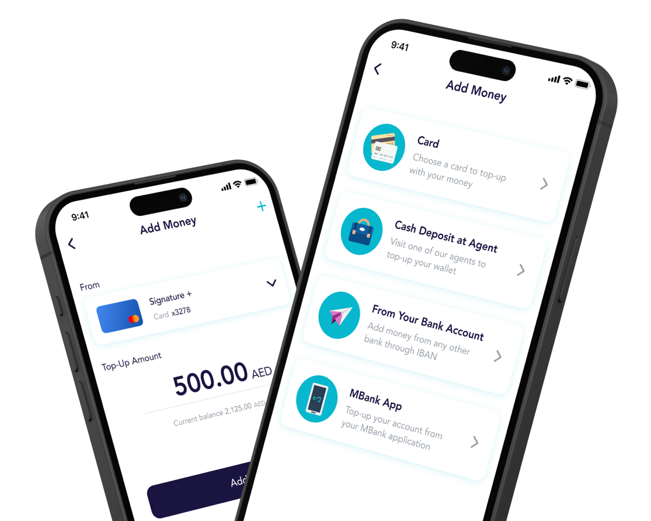 أضف رصيدًا إلى محفظتك من أي حساب مصرفي،